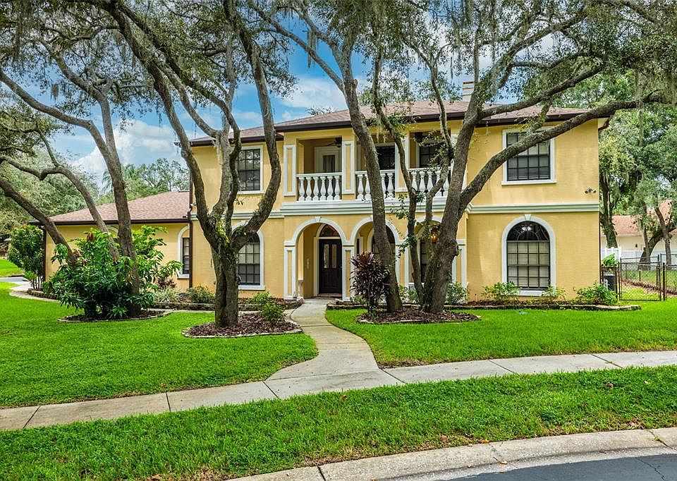 **Motivated Seller, due to relocation** Imagine gathering friends and family in this stunning home, to celebrate the holidays - what a great way to ring in the New Year! Nestled in the highly sought-after gated community of Crescent Forest. Before you even get inside you will be pleased to know the roof and water conditioning system was recently replaced in 2023. Now, step inside this gorgeous home filled with natural light, beautiful hardwood flooring and many architectural details. You will love the open floorplan perfect for a day of entertaining or a quiet night relaxing by the cozy wood-burning fireplace. The primary bedroom and guest room are conveniently located downstairs. Upstairs you will find an additional four bedrooms and a versatile flex room with access to a lovely balcony overlooking a lovely canopy of oak trees. Enjoy the spacious backyard with screen enclosed pool on those beautiful Florida days. Within the community you can also enjoy a game of tennis or basketball on the sport court. Just a short drive to the Veterans Expressway provides easy access to Tampa’s International Airport, downtown Tampa and Florida's stunning beaches. This home truly has it all—luxury, comfort, and convenience!