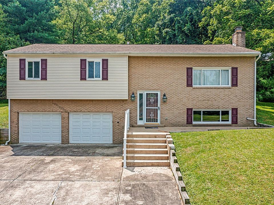 ***New virtual staging!***Attractive split-entry home with an oversized sunken living room, and an open floor plan. High end Kitchen with white shaker cabinets, soft close drawers, and large granite island. Granite countertops, Stainless steel appliances, and recessed lighting. Beautiful porcelain flooring in the kitchen, and hardwood in the dining area. 3 bedrooms on the main level, and 2 full bathrooms. HUGE finished basement with a half bathroom, and a full wall of bricks surrounding the fireplace! Covered back patio, and a beautiful backyard space that backs up to Boyce Park! Plum Boro schools. Welcome home!