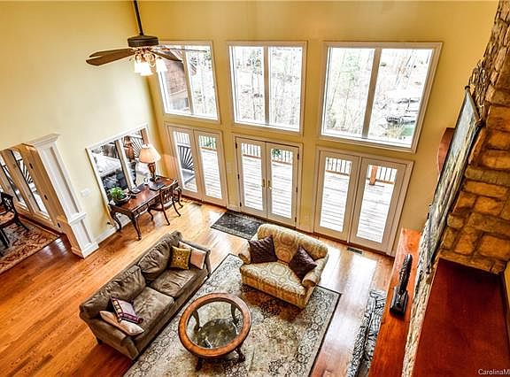 Custom built WATERFRONT home w/stunning details throughout. Open floor plan and breathtaking views of the lake! Master on main & large bonus room over garage. Modern kitchen w/gas range, wall oven & butcher block island. 2-story stacked stone fireplace in GR. 3 addtl. bedrooms upstairs. Finished basement features stained concrete floors w/rec room, workout room, 2 BRs & 2 full baths, tons of storage! Go outside and enjoy GORGEOUS landscape features w/custom built lakeside waterfall feature, covered Brazilian IPE dock/pier, 2 screened porches & views out to main channel! DEEP WATER!! Community boat storage!!