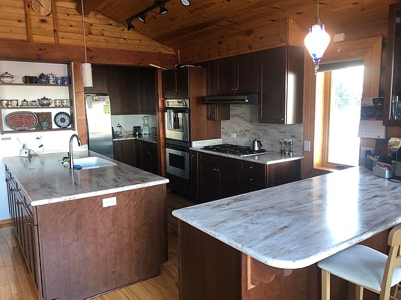 Beautiful Alaskan Log home on 1.19 acre parcel with amazing views of sleeping lady mountain. Maple wood floors, remodeled kitchen, stainless steel appliances, master suite with private loft.A spacious upper deck,HUGE 4 car garage with amazing storage, RV parkingHome inspection on file and repairs are complete!