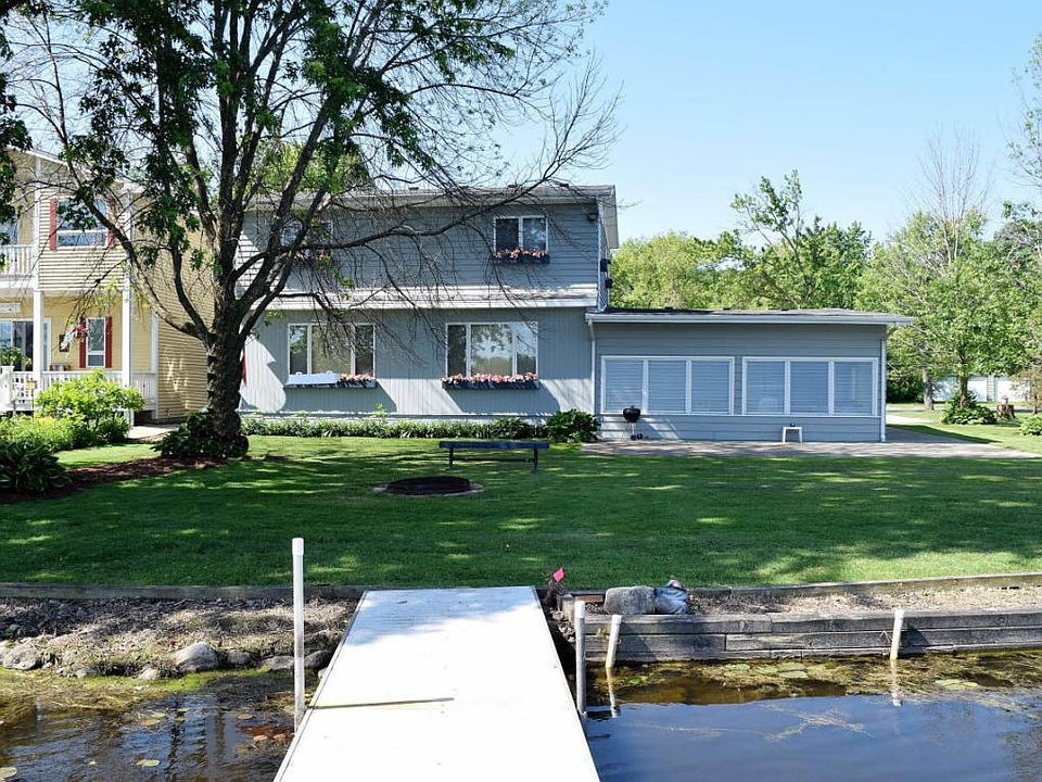 Lakefront family living and prime fishing spot in the Burlington School District! With 85 ft of level waterfront, a 2.5 car garage and plenty of space for all your friends to park, this home is perfect for entertaining or basking in the sun on the new patio. On cooler evenings, enjoy the warmth of the firepit. The upper level boasts 4 spacious bedrooms with new wooden flooring. The main level has wonderful water views from the large windows as well as a full bath and laundry. Be amazed at how the yard transforms in Spring and Summer! Home warranty and great updates.