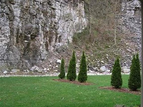Stunning exclusive executive style patio in gated Quarry Bluff Estates. Enjoy private clubhouse with pool & full access to quarry including fishing, swimming & non-motorized boating. Upgrades abound in this spacious & private location such as 8 ft doors & 12 ft ceilings on main floor & custom light fixtures. Granite counters, ceramic floor tile, oversized breakfast bar, & stainless appliances describe your kitchen. Relax on either of your two back patios facing a very private & magnificent setting of 60 ft limestone quarry cliffs & a waterfall. Peace & quiet awaits you in your totally insulated interior (zoned heating) & exterior walls & ceilings; your master includes a vaulted trayed ceiling, seperate tiled shower & whirlpool tub, double vanities, & a large walk-in closet with custom shelving. Seperate loft in 24 x 26 garage for extra storage is a great bonus. Sq ft & rm sz approx.