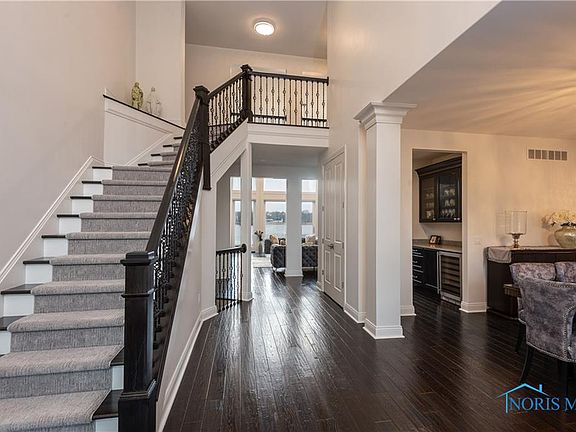 Exquisite features, open layout and gorgeous waterfront views throughout this custom built home in the Reserve! 5 acres, huge patio w/firepit, covered stamped patio w/fireplace, retaining wall w/custom flower/landscape boxes & sandy beach. Gourmet kitchen offers dual island, pot filler, quartz, 14x8 walkthrough pantry w/2nd refrig/freezer, lg eating area. 2 story great rm, stone/gas FP, built-ins, floating shelves. 1st flr master w/spa like bath & 16x10 custom closet. 8'doors, custom lockers & built-ins in mud rm. Formal dining w/6x5 buffet/wine refrig. Lg bdrms w/private baths/walkins.
