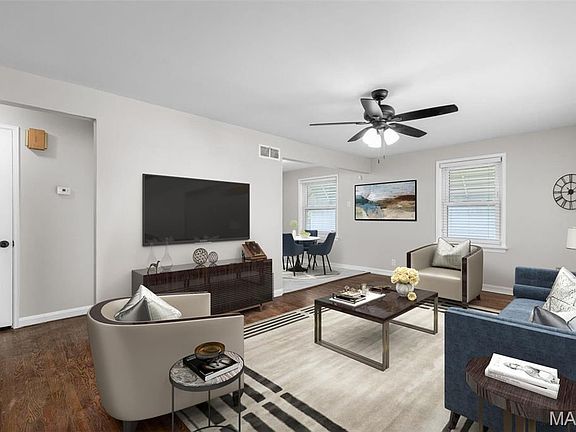 Don’t miss this beautifully rehabbed home located on a quiet, tree-lined street in Hanley Hills! This updated gem features a brand-new eat-in kitchen, remodeled bathroom, and two spacious bedrooms on the main level. Downstairs, you’ll find a finished basement that offers incredible bonus space—including a rec room with a cozy fireplace, a second full bathroom, and a kitchenette - perfect for entertaining or house-hacking! Enjoy an attached one-car garage and a fully fenced backyard-ideal for pets & outdoor gatherings. Other Major updates include: electric meter and mast & new hot water heater. Roof is only 10 years old.