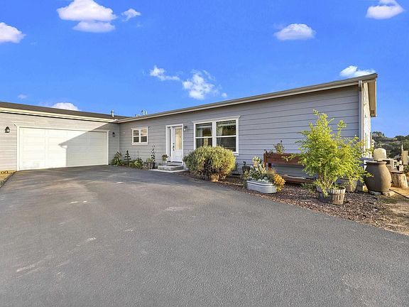 Step into your private oasis of peaceful, country living overlooking the valley while only being minutes from city amenities. This stunning property is an entertainer's delight boasting a luxurious pool, spa, outdoor sitting areas, lights, fire-pit & amazing views. Experience some of the most spectacular sunsets, stargazing & the tranquil sounds of wildlife & surrounding nature. This spacious modular home has 3 bedrooms with an optional 4th & an open concept floor plan. The freshly painted kitchen with granite countertops & stainless steel appliances opens up to the living room & dining area, making it a great space for large family gatherings. The common spaces shine with the beautiful hardwood floors & there is new carpet in each of the bedrooms. The home sits on a 7+ acre lot, with mature fruit trees, a greenhouse, garden beds & is perfect for ADUs or HORSE PROPERTY. The leased solar panels are at an affordable rate of $125 per month, making it eco-friendly & cost-efficient. No HOA! The location is centrally located with easy access to I-15 & HWY 76 whether you want to spend a day in wine country, at the beach or in the mountains. This property is a rare beauty & not to be missed!