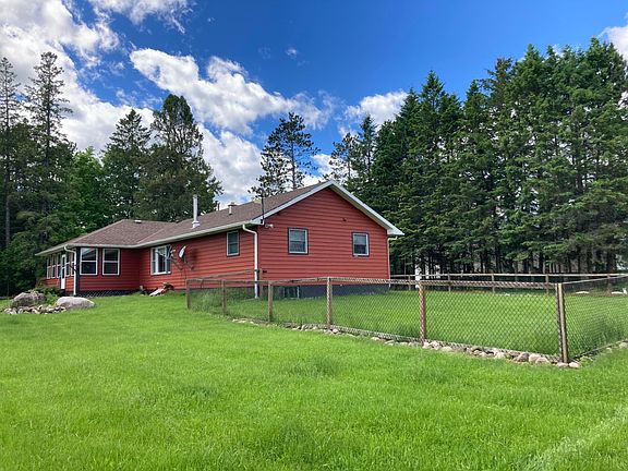 Country living at it's best! This ranch style home offers a blend of comfort and tranquility. The home consists of a spacious living room, a beautifully designed kitchen w/ gas cooktop, built-in double ovens, dishwasher and microwave, dining room w/ patio doors to the open deck, a large living room, primary bedroom w/ private bath and walk-in closet, two additional bedrooms, full bath, main floor laundry room and a large 3 season room. 2008 updates include wiring, plumbing, mound system, roof & 1/2 of basement. New hot water heater was installed in 2022 & a new furnace in 2023. There's some fenced in yard for the pets and the central air conditioning and two wood stoves ensure year-round comfort regardless of the season. All of this is situated at the end of a dead-end road w/ a sprawling 202+ acres of woods and open land to roam and play. The mostly full basement offers ample storage and the massive 45' x 70' pole building stands ready to house all your vehicles, equipment and toys!