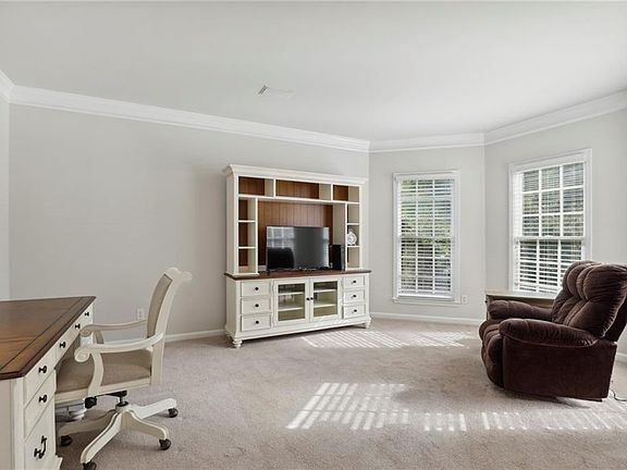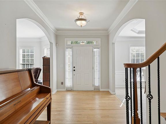 - Interior: 10 ft+ Ceil Main, 2-Story Foyer, Double Vnty Other, Entrance Foyer, Trey Ceilings, Wall/Wall Carpet, Bookcases, Disp Attic Stairs