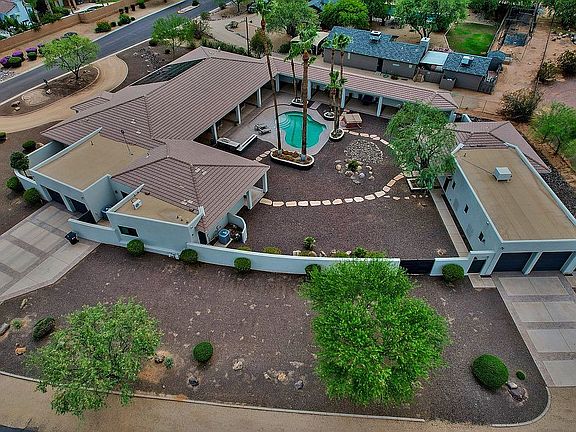 5600 SQ FT of RESORT LIVING with a Contemporary flair...Main house boasts a DESIGNER KITCHEN with double islands, top of the line stainless appliances including beverage and wine refrigerators, 2 laundry rooms, media room, office, game room, work out room, Large Master and a GREAT ROOM floorpan with POCKET DOORS that lead to covered cabana spaces , sparkling pool, built-in BBQ, fire displays and flows to a fully equipped one bedroom Guest house . 2 car garage attached to main and a tandem 4 CAR WITH 11 FT RETRACTABLE DOORS to fit all your toys. No HOA Over an ACRE with circular drive and PRIVACY in the Heart of Scottsdale...A Great VRBO opportunity!