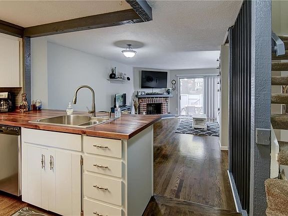 Nice corner unit in Four Colonies, includes nice patio area with newer fence. Beautiful real hardwood floors, newer carpet, newer windows, updated main bath...so many updates. Counters are beautifully finished wood that makes the kitchen pop around the updated appliances and painted cabinets! Second floor has updated main bath and two nice sized bedrooms with large closets. Basement family room has carpet and finished walls, along with a large unfinished area for storage and laundry.