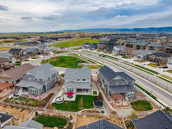 Why wait for new when this gorgeous 2-story is available NOW?! This beautiful home is located on an oversize corner lot and features 3 beds, 2.5 baths, great room, kitchen, unfinished basement and 2.5 car garage. Beautiful upgrades and finishes throughout: Wide plank hardwood floors throughout kitchen, living, dining and owner's entry, granite countertops in kitchen, custom tile kitchen backsplash, custom kitchen island pendant lights and dining room light fixture, upgraded tile floors in laundry, guest bathroom and master bathroom, upgraded tile in master shower, quartz countertops in master bath, stamped concrete patio and more. Finish the basement for even more living space. Close to dining, shopping, entertainment and other amenities. Easy access to E470, Southlands, Aurora, Lone Tree, the Denver Tech Center and beyond. Don't miss your opportunity. Welcome Home!
