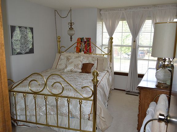 Beautiful three bedroom home in a family community on the end of a cul de sac. Newer exterior paint, new roof, gutters and downspouts 2013, new Lenox furnace 2009, new Lenox air conditioning 2009, new hot water heater 2011, solid oak wood floors in entry, kitchen, dining room, family room, stairs and landing, and tile floors in bathrooms with beautiful carpeting in the formal living room and the bedrooms Large kitchen with breakfast nook surrounded by windows. Corian counters and sink, electric cooktop stove, self cleaning oven, stainless fridge and dishwasher. Built in microwave. Formal dining area, lower level family room, with walk out onto beautiful outdoor tile and wood deck area with custom patio doors. Has large central fireplace that faces both the family room and the formal living/dining area. Closets have custom cedar floors, granite counters in bathrooms, wrought iron security front door and basement window wells. Updated sprinkler system with drip irrigation. Mature landscaping and flowerbeds with gorgeous trees. Absolutely smoke free home.