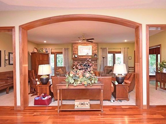 Your rural retreat awaits! Secluded brick ranch on 1.5 acres w/frontage on picturesque Todd's Ford Creek. Located at the end of a country lane maintained by Harlan Twp. Custom built with quality details throughout. Open floorplan. Beautiful deck w/wooded views. Each bedroom has private bath. Huge walk-out basement, ready to finish. City water.