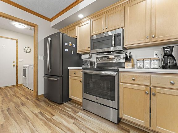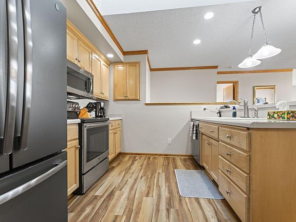 Beautifully updated and meticulously maintained ranch-style townhome awaits you in the highly sought-after Glendale Hills area. This home features a private, wooded area behind it, which is city-owned, providing a serene backdrop for wildlife watching right in your backyard! Inside, you'll find main-level living with 2 bedrooms and 2 baths, including convenient main floor laundry. The inviting living room boasts a gas fireplace and leads out to a private deck through the patio door. The spacious main floor primary suite includes a full bath and walk-in closet. The second bedroom is perfect for use as an office. The kitchen is bright and updated with a skylight, new flooring, and solid maple cabinets. The lower level is beautifully finished and offers an additional bedroom, bath, family room, and a generously sized storage/utility room. Completing this home is a two-car attached, finished, and heated garage with additional cabinets for storage.