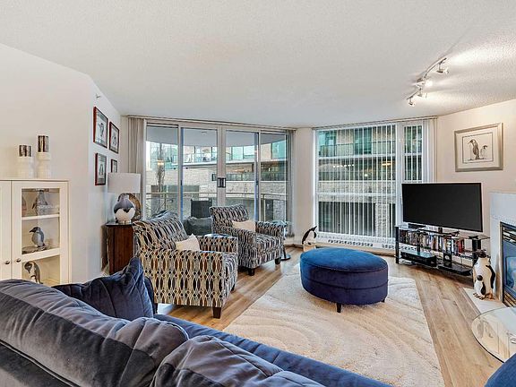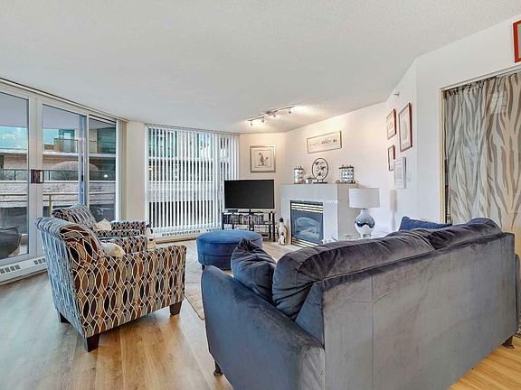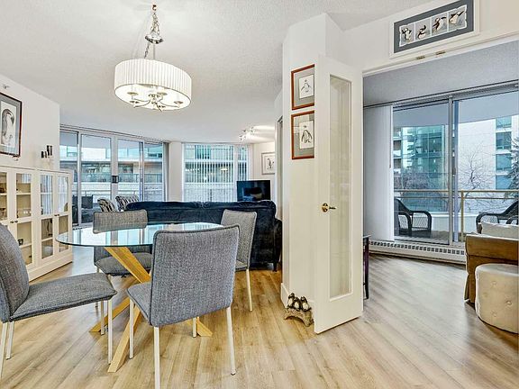 Welcome to the prestigious LIBERTE condominium, ideally located in the heart of Eau Claire, offering stunning scenic views. This highly sought-after location features over 1,175 sq ft of open concept living space, including 2 bedrooms, a den, and 2 full bathrooms. The unit comes with a heated titled parking stall and two balconies. Enjoy floor-to-ceiling windows with private views, complemented by Hunter Douglas window coverings. The spacious private front entry leads to a large living room with a cozy gas fireplace. Adjacent to the living room, the dining area features sliding glass doors that open onto one of the balconies. The gourmet kitchen boasts a large island, ample quartz counter space, modern cabinets, and stainless-steel appliances. The master bedroom is spacious, featuring his and hers closets, room for a king-sized bed, and a renovated 3-piece ensuite. This unit comes with a titled parking stall and an assigned storage unit, both conveniently located on P1. Residents of The Liberte enjoy exceptional amenities, including a tennis court, a spacious fitness center, and a recreational room, all meticulously managed for maximum satisfaction. Ideally situated just steps from boutique shops, fine dining, Eau Claire Market, Prince's Island Park, and the Bow River pathway system, every convenience is within reach. Elevate your urban lifestyle – welcome to the pinnacle of sophisticated city living. The unit also boasts over $60,000 in upgrades in recent years.