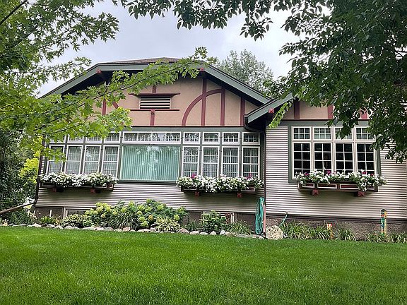 One of the communities most historical homes. Stately, elegant, beautiful, stunning, magnificent are adjectives reflective of this home. Built in 1925, the home has been carefully modernized while still maintaining its historical charm and era character. Situated on a spacious corner lot, with nearly 3,000 square feet of living space. The one level floor plan is unique to this home. With three bedrooms and two bathrooms on the main floor. A finished basement with a bathroom and potential for more bedrooms (no egress windows) there is no shortage of comfortable living. A gourmet chefs kitchen with granite countertops, cherrywood Braaten Cabinetry, panel ready appliances and an island measuring 4 ft x 7 ft, affords the grandest kitchen experience. The original but refinished red oak hardwood floors showcase the kitchen, everyday dining room, library/family room, formal dining room, and formal living room to be simply stunning. The spacious master bedroom and en suite bathroom offers a walk-in tile surround-steam shower, double sinks, makeup vanity, and a large soaker tub. The extra-large, walk-in closet is a clincher to enjoy. The two main floor bedrooms are oversized. The nine-foot ceiling height throughout the home coupled with the striking wood trim work is consistent throughout the home. There is a real openness feeling to the home with ample windows that have Hunter Douglas window treatments. The two-stall attached garage is heated with expansion room for a third stall. An insulated three season sunroom looking out to a beautiful perennial flower garden adds to the outdoor experience. The historical character of this 96-year-old home is welcoming and comforting. The mature tree neighborhood is within walking distance to churches, two elementary schools, a medical clinic and hospital making it a perfect home location.