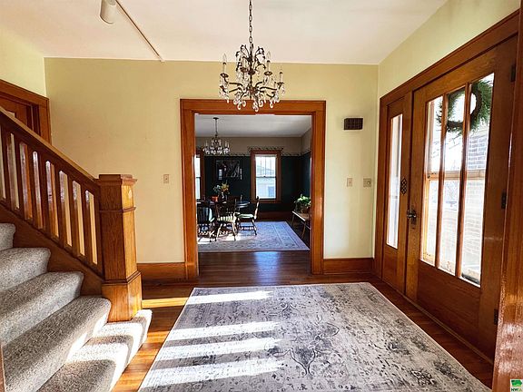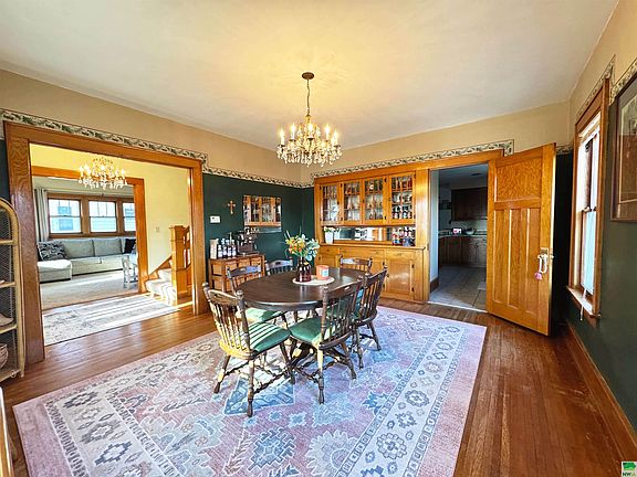 Introducing a timeless gem! Nestled just blocks away from the local park, this charming 1922 bungalow-style home welcomes you with its original, stunning woodwork, seamlessly blending classic charm with modern comforts. Step into the updated kitchen and family room, where a cozy gas fireplace beckons. The main floor boasts over 1000 square feet of space, including a generously sized living and dining area, a full bath, and a versatile office or potential extra bedroom. Upstairs, discover three spacious bedrooms with walk-in closets, a sizable full bath, and an additional non-conforming bedroom. Outside, enjoy the convenience of a spacious attached garage, a deck area perfect for outdoor gatherings, and a delightful front porch complete with a swing. The basement offers endless possibilities and houses a laundry room equipped with a convenient laundry chute. Embrace the warmth and character of this lovely home, where timeless elegance meets modern living.