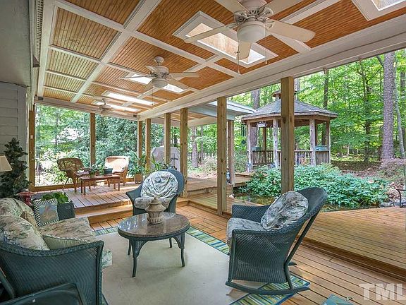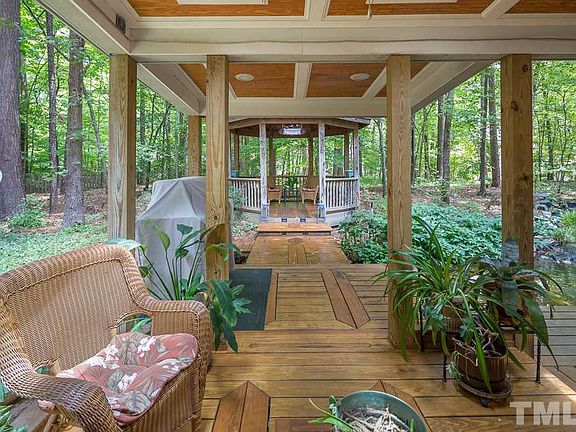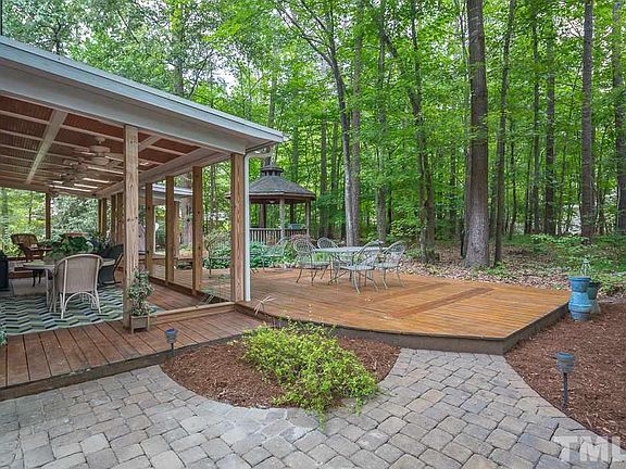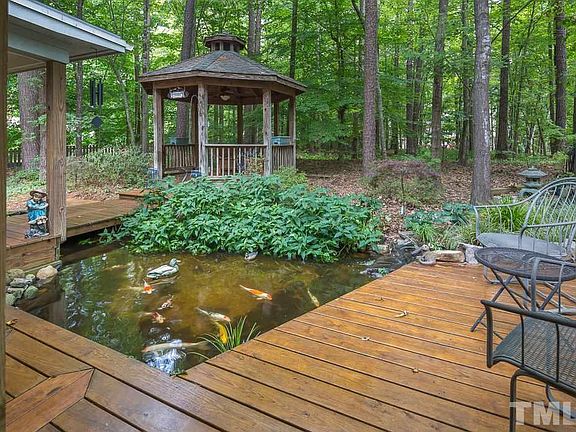 Excellent location inside of 540 and no city taxes. Wonderful established neighborhood with mature trees. Enjoy the covered outdoor living space with coffered ceiling, koi pond, and gazebo all within a private wooded setting. Inside is a large family room, fireplace and picture window. Kitchen has new granite, tile back-splash and stainless appliances. Hardwoods recently refinished, new carpet and paint. Mostly all new windows. Updated master bath with curbless walk in shower. Bonus room with wet bar.
