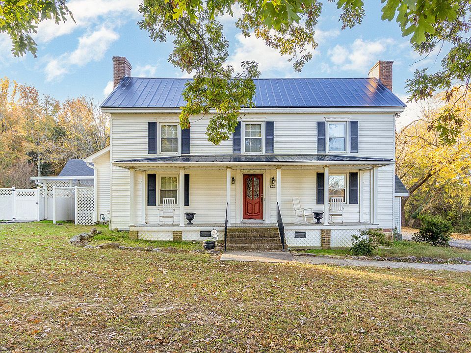 Beautiful 1940's Farmhouse situated on 16.550 acres in the heart of Bahama! This home offers the charm of an older home with rocking chair front porch overlooking private lot with a shared pond; an abundance of cabinets and counter space in this bright kitchen, formal living room, dining room and breakfast area, sunroom; original wood floors; partially unfinished basement; inground swimming pool with a pool house; amazing property that is worth seeing!!