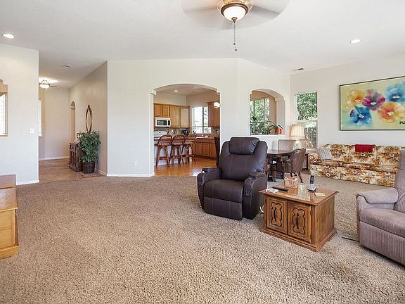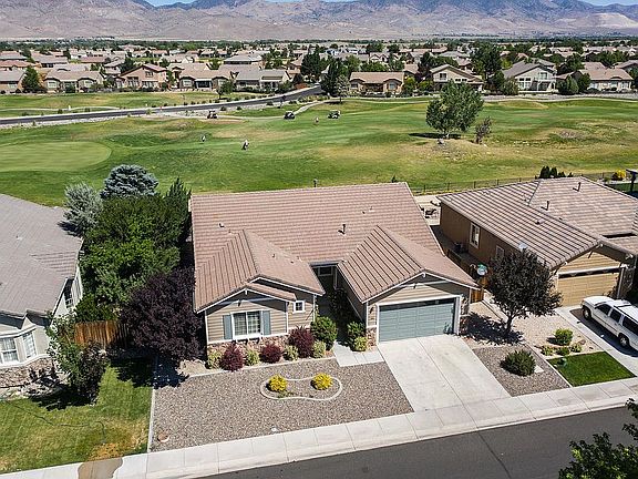 One story home right on the beautiful Dayton Valley golf course with mountain views! Home features a nice open floor plan with high ceilings and beautiful architectural features. Kitchen features granite counter tops with new dishwasher, microwave, water softener and faucets in 2018. Very nice backyard patio overlooking the golf course. Master bedroom has a suite, master bathroom features double sinks, shower, tub, and walk-in closet. Sliding door from the master bedroom opens onto patio. This gated subdivision offers security and prestige! Front and back low maintenance landscaping on automated drip/sprinkler system. This gated subdivision offers security and prestige! Front and back yards offer low maintenance landscaping on automated drip/sprinkler system. Washer and dryer are included. One hour notice minimum for all showings. Elderly owner will be home in her bedroom for health and safety reasons, please do not enter bedroom. This property may not be cleaned/sanitized between showings so buyers and their agents assume any risk for their health associated with showing this home. Hand sanitizer and gloves are available on table in entryway.