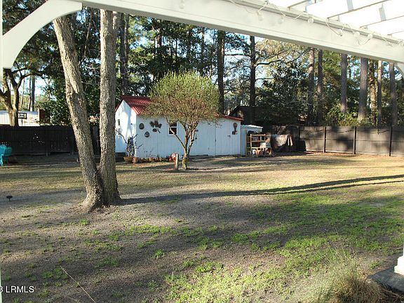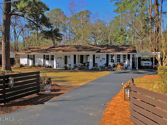 Wonderfully maintained home centrally located in Beaufort. Numerous upgrades in the interior & exterior. Electrical, plumbing, A/C & many more in the past year. Kitchen has all new appliances (induction and air fryer range), quartz countertops, butcher block island & SS sink. Wood-burning fireplace. All new doors, 2 added; primary BDR & laundry. New A/C. Interior electrical box wiring was updated & exterior electrical box was replaced. Exterior porches front & back were expanded. 2 pergolas were added; on driveway & back porch. Property is almost 1/2 acre with a newly installed wooden fence. Large outbuilding with power & water. 2nd storage unit was added. Centrally located between Beaufort, schools and military bases. Privacy for pet owners, gardeners and entertainers!