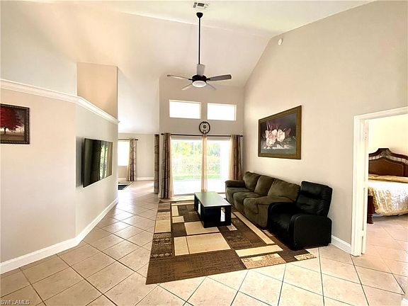 If you're looking for something special in Flamingo Estates your search is over. Listen to some of the amenities of this home and see why we feel its currently the best deal in the neighborhood. 3 bedrooms, 2 baths, formal living room, formal dining room and a family room with a wood burning fireplace. Freshly painted inside and out. Tile on the diagonal throughout with pergo wood floors in the two guest bedrooms, no carpets to continually clean and replace! Beautiful kitchen with lots of cabinet space, stainless steel appliances and breakfast bar. Large master suite with walk in closets and sliders to the lanai. Gorgeous updated master bathroom with 12x24 porcelain tile, dual vanities, walk in shower with gorgeous escabos stone floors and 6x12 porcelain tile up the walls. The guest bathroom has dual vanities, morocco brown stone counter tops, walk in shower with 4x4 tumble stone floors and 6x6 tumble stone walls with stone listello accents. AC is aprox. 5 years old, a new hot water heater was installed in 2019. This is an exceptional move in ready home, at the end of the street for maximum privacy and added parking.