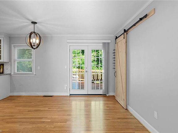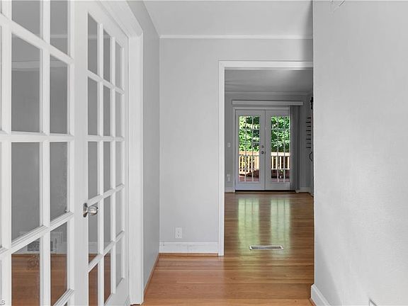 This home is well suited for a family, students or investor. The french doors to the living area and updated kitchen create a welcoming environment. There is a full bath on the main and lower level with a separate entrance off the back patio which offers living options. Beautiful hardwoods and all appliances in home remain. Refrigerator is brand new. The back yard offers a large deck and fenced yard with privacy. Great proximity to Atrium Health.