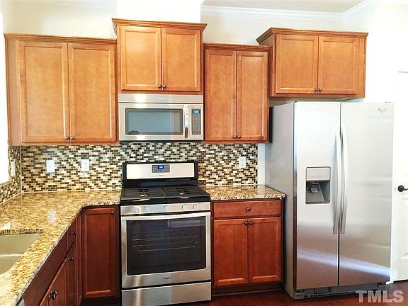 TH with 2 stories, 3 beds, 2.5 baths, 2-car garage. Foyer open to 2nd floor, extrasun-room on 1st floor for additional space. Spacious owner's suite w/ largebathroom and WIC. Hardwood floor on entire 1st floor, tile in bathroom. Manyupgraded features:granite counter-top and tile. Stainless steel refrigerator,microwave, oven, gas stove and washer/dryer included. Community pool, park andplay area. Close to RTP, Duke, UNC,Hwys I-540 & 70,walking distance to BrierCreek shopping area.Wake county Schools.