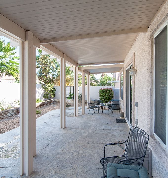 Gorgeous single story, 4 bedroom, 2,040 sq.ft. home in the heart of Summerlin. Open floorplan, new carpet and tile flooring throughout, gas fireplace in living room, laundry room with storage and utility sink, 2 car garage with extra storage, pot shelves, window coverings. All appliances included! Master with whirlpool tub, separate shower. Backyard w patio cover with stamped concrete, beautiful landscaping + more.