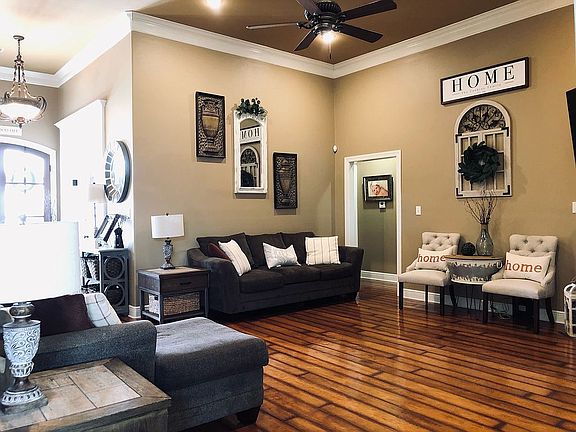 Stunning 4 bedroom, 3 1/2 bath home w/ lake view from front yard! Located on a huge 1-acre lot with a very private backyard in the coveted Greystone Subdivision. House features a large covered back porch with a built-in grill, ceiling fan, and gas lanterns making it the ideal setup for entertaining. Backyard consists of a fire pit providing the perfect oasis for hosting family gatherings. Huge backyard with plenty of large trees that allow ample shade during the hot summer months. Grand Family room w/ beautiful wood floors throughout & gas fireplace opens to the Gourmet kitchen w/ unique arched ceilings, breakfast bar, granite, tile backsplash & two large pantries. Retreat to your own Master suite w/ lighted tray ceiling, gas fireplace, double sinks, huge vanity, custom tile shower, jetted tub & spacious walk-in closet. Large guest rooms, bonus room w/full bath, formal dining room, office, & 3 car garage.