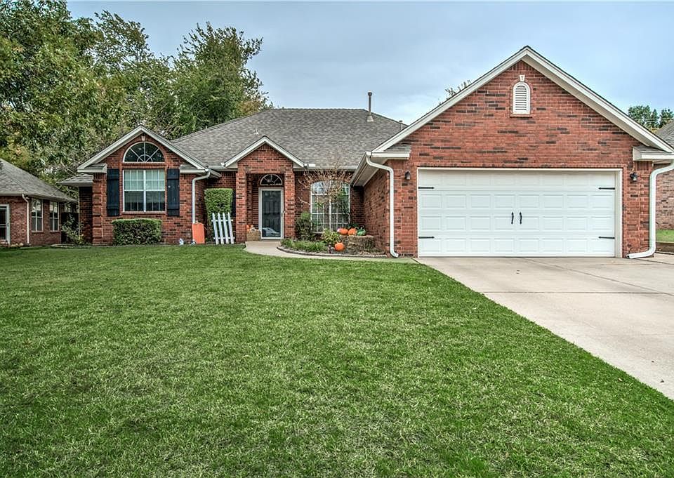 Location, location, location! This home is located in the established Copperfield addition in Edmond on a greenbelt. No neighbors behind you, mature trees and plenty of bird watching! The home features 2 living areas, a dining room, 4 bedrooms and 3 full baths. Owners have taken great care of the property and added elements that makes a house feel like a home. Be sure to check out the built in desk and shelving in the 4th bed, floating shelves in kitchen and Pinterest inspired feature walls in living room and owners suite. Combination of carpet, engineered wood and tile in home with wood burning fireplace, gas range in kitchen island, whirlpool tub in master bath, beautifully upgraded tile shower and massive walk in closet.