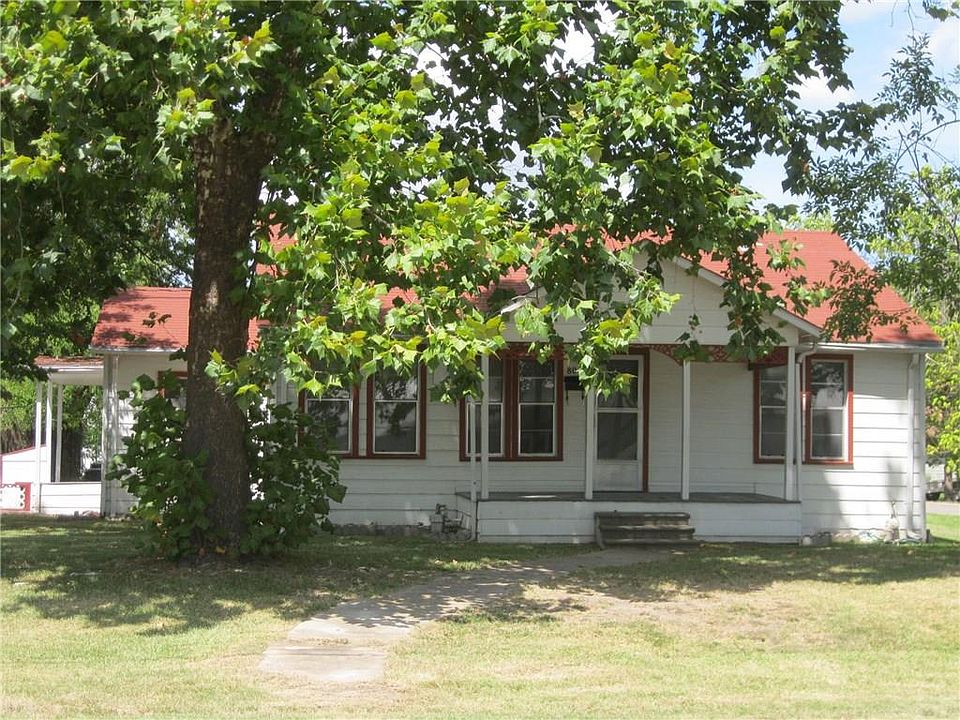 There is lots of potential at this older home located on a tree shaded corner lot. From the covered front porch you will enter the foyer with decorative fireplace, then into the living room with windows on two sides to let in lots of light. The 2nd living area is adjacent to the eat-in kitchen. There is a master suite + 2 guest bedrooms and 2 guest baths. A storage shed is right next to the detached garage which has a 13X19 shop area with workbench & lots of storage.