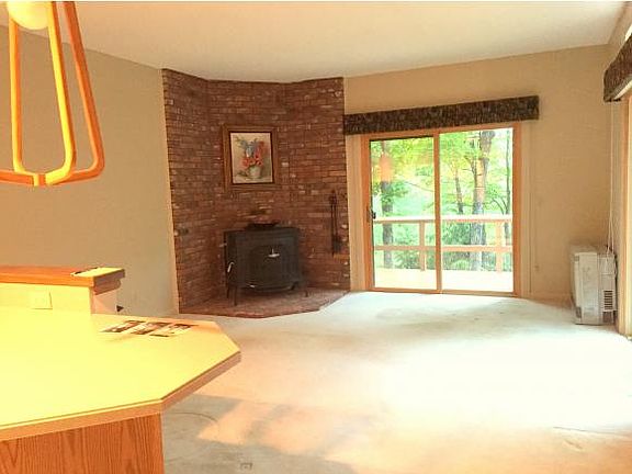 With a wrap around private deck, full view of the Cove water, a wood burning fireplace in the Master suite (with balcony) and comfortable living spaces, who would not be happy with this three level condo? The finished lower level offers a wet bar, family room and office space with the plumbing for a half bath addition. There is also a large storage room. The first floor offers access to the deck from the living room with two sets of sliders and from the dining room. A guest room and full bath completes this level. The upper level has the master suite, another bedroom and a half bath. Two parking spaces close to a level entry are great for rain and snow days. The owner has access to all Eastman offers: tennis, golf driving range, lake and beaches, cross country skiing, hiking trails, indoor pool and work out room. Conveniently located close to the north entrance this home allows easy access to all that the Upper Valley has to offer as well.
