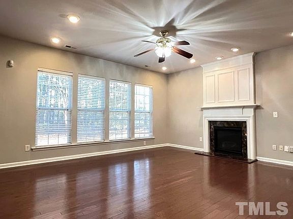 Beautiful 4 bedroom single family is desirable RTP area. Fresh Paint. Hardwood through out 1st fl and stairs. SS appliances, granite, backsplash and recess can lights. Bar top. Formal dining. Study/office. Fireplace in family room. Lots of windows. Master with dual vanity, tub, shower, walk in closet and trey ceiling. Refridgerator, washer and dryer included. Great schools!! Great centered locations!! Just a short walk to shopping and dining. Easy access to RTP, RDU, I-40 and I-540