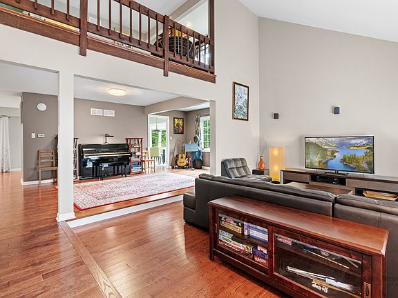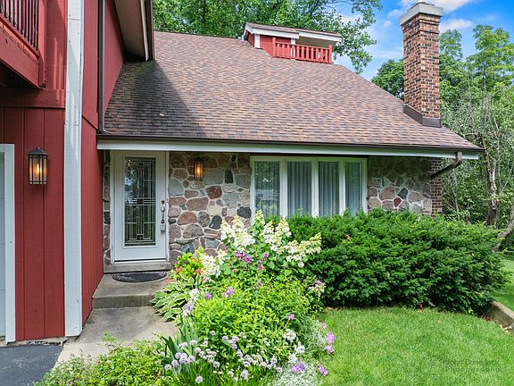 Step into elegance and charm with this stunning two-story home in desired Barrington Village. Situated on a spacious .64 acre lot with a park-like setting, this home offers unparalleled comfort and luxury. The main level welcomes you with a sunken formal living room, adding character and perfect for relaxing or entertaining guests. Adjacent to it is a formal dining room, currently used as a music room, showcasing the home's versatility. The completely re-configured kitchen boasts a charming breakfast area, a cozy fireplace sitting area, and an additional dining space, all enhanced by modern appliances, custom cabinetry, gorgeous hardwood floors and elegant countertops. From the kitchen, step into the four- season room that overlooks a lush garden with a flagstone patio, making it ideal for year-round enjoyment. Additional features on the main level include a half bath, a laundry room, and a large walk-in drop zone for added convenience. You'll find a large Hardwood loft space on the second floor with a library and an office that offers a 180 view of nature and the Baker Lake Conservation. A spiral staircase leads to extra storage and a crow's nest lookout for panoramic views. Three secondary bedrooms share a fully updated hall bath with heated floors, while the owner's suite features an updated bathroom with heated floors and a private balcony that offers a peek of the lake. The full finished walkout basement is designed for both entertainment and relaxation, featuring a fireplace with gas insert, wet bar, half bath and second office. A dedicated relaxation/spa area includes a sauna, meditation or yoga space with electric fireplace, and a shower room, providing the ultimate wellness experience. This home is a true sanctuary offering modern amenities, thoughtful design, and great views. The cul-de-sac double lot with mature trees provides privacy and a secluded country feeling while offering proximity to all village amenities: Metra station and downtown Barrington shops and restaurants are less than a mile away and Grove Elementary School is only a few blocks from the house.