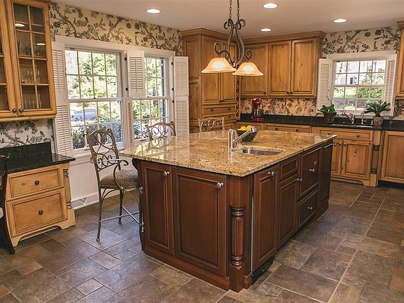 Exquisite custom built all brick Georgian Colonial located in the center of Elizabethtown in city school district, with many exceptional features, including: 1. Mouser Custom Kitchen - granite island and countertops; imported Italian tile floors; Viking 6 burner gas range; 2 ovens, warming drawer; 2 dishwashers; trash compactor; stainless refrigerator and 3 sinks; butler's pantry with wine refrigerator; walk-in pantry. 2. Six Full Bathrooms - with custom high definition porcelain, granite counter tops; basement bath includes a large Swedish sauna. 3. Master Bath - huge custom walk-in closet, custom cabinetry and large shower with granite seat, rain and hand-held spray fixtures. 4. Extra Large Redwood deck off Master Suite. 5. Large Formal Living, Dining and Entry - featuring solid oak hardwood floors. 6. Office - includes custom built-in desk and bookshelves and 3 large window walls with views of pond, trees, and bridge. 7. Finished Basement with In-Law Suite - complete with kitchen, full bath, private entrance and patio. 8. Cedar Closet, and Large Storage Room in basement. 9. Brick, 6 car Garage (40x42) - heated and air-conditioned. 10. Gorgeous Custom Landscaping.