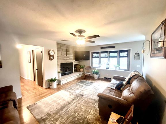 This home is loaded with $tyle..a complete remodel of the main level!!! A must see! LP wood siding with warranty installed 2015, all new windows in 2015, new exterior doors in 2015, new high impact asphalt shingles in June 2018, new gutters in June 2018, lawn sodded in 2017, underground sprinkler system in 2017, new sidewalk in 2016, Remodeled Kitchen in 2015, new granite kitchen counter tops, new kitchen cabinets, new kitchen tile flooring, new swanstone kitchen sink, remodeled sunroom in 2016, oak floors refinished in 2015, freshly painted interior with nice colors, built-in organizer in bedroom closet, new ceiling fans, remodeled bathroom in 2015, new high quality Bali window shades and blinds, remodeled laundry room in 2016, limestone fireplace, high efficient central heat and air, attached two car garage, ro system, water softener, new deck in 2021, storage shed 16x10, partial basement that is partially finished with an extra bedroom and potential for another bathroom, corner lot, close to high school, nice neighborhood.