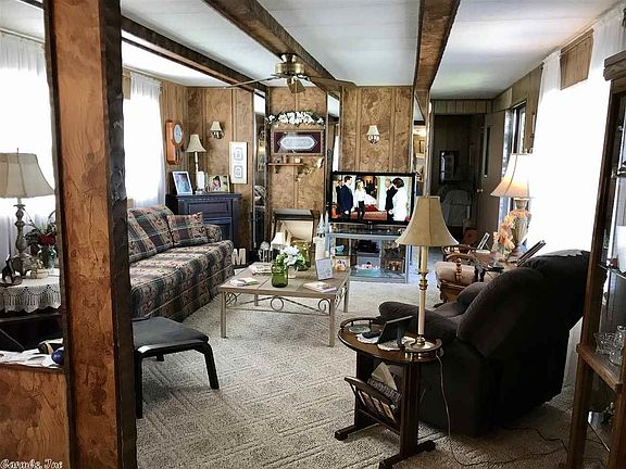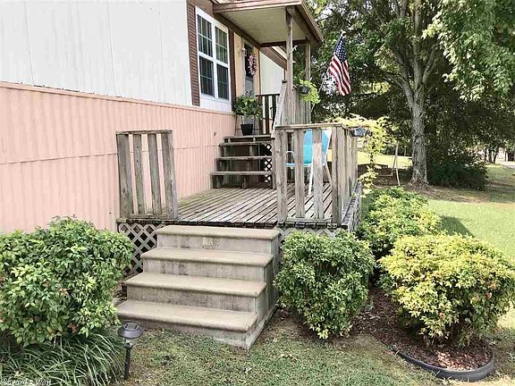 One owner!! Immaculate single wide mobile home in the city limits! Split plan. The larger bedroom has it's own full bath that has been updated and a walk-in closet. All kitchen appliances convey. Spacious living room and formal dining area. Central air is 7 years old. Central heat is brand NEW!! Front wood deck AND covered back wood deck! 12x12 storage building has electricity. 2-car carport will convey. Must see!!