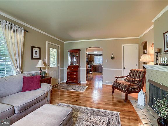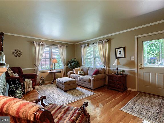 Beautiful, well-maintained Rancher on lovely tree-lined street in Palmyra. Brick walkway, (also featured in the back yard), leads to front door of this warm, inviting home. Gleaming hardwood floors, crown molding and chair rail welcome you to the living room with wood burning fireplace. Both bedrooms continue hardwood floors, chair rail. 2nd Bedroom features window seat with storage. Left of living room find dining room, kitchen and family room, which can also be 3rd bedroom or home office. Ample storage in kitchen with Corian countertops & Custom-Built Maple cabinets. Step out onto covered side porch and just past the porch swing & paver patio with Pergola, this lovely backyard offers storage shed, detached garage and covered parking space. Easy access to Hershey, heart of Palmyra, walk to schools and local parks. Sellers have owned home for many years and truly created a Home Sweet Home.