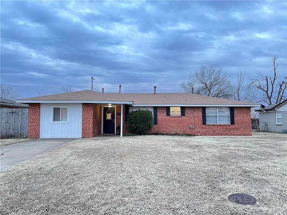 Adorable AND Affordable enhanced with updates and recently refreshed and replaced items. Must see to fully appreciate!! This three bedroom, one bath, home is ready for a new family. Expanded floor plan added an optional 4th bedroom, large family room or Home work space. Nicely sized Living Room and dining area makes this home seem open and inviting. The kitchen has been updated with fresh painted cabinetry and new light fixture! Indoor utility room and Room to play in the HUGE fenced backyard! Great house for NEW homeowner or rental property. Home is close to Tinker Air Force Base, Boeing and Downtown OKC. Call TODAY to schedule a showing!