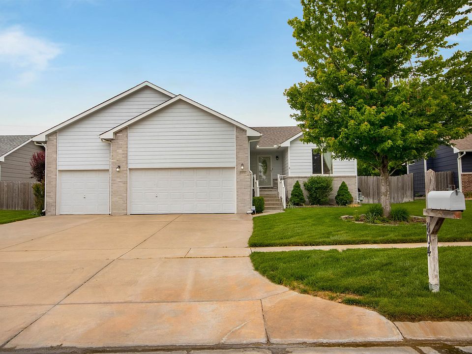 Don’t miss out on this beautiful spacious home in the safe and peaceful Stone Creek neighborhood in Derby! Just down the street from a multitude of shopping and restaurant options on Rock road as well as easy access to K-15/Southeast Boulevard making it easy to commute to surrounding areas. Come into a warm and welcoming living room with the kitchen/dining area to the side, there are sliding doors in the kitchen that open up to the balcony overlooking the beautiful and spacious backyard! The master bedroom has its own private full bathroom which includes a jack and jill sink and a walk-in closet that includes plenty of shelving and garment hanging space! There is one more bedroom and bathroom on the main level and another bedroom and bathroom in the basement for a total of 3 bedrooms and 3 total bathrooms in the home. The basement also includes a large living area perfect for entertaining, with sliding glass doors that lead up to the fully fenced back yard, as well as a Huge storage room that could be converted into another bedroom if so desired. This home also includes a 3 car garage and storage shed in the back yard for additional storage space. This spacious home in a desirable school district is perfect for a growing family or any buyer who would love the peacefulness of living in a smaller community while having the convenience that the newer developments in Derby provide! Come and see this wonderful listing. Call today for a private showing.