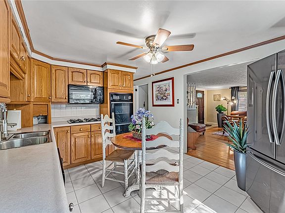 Don't be fooled! This home is bigger than it looks and sits on 2 acres. Large family room off of kitchen is currently used as a dining room and family room. It walks out to the huge, covered porch overlooking the lush backyard. Entertainers dream. First floor master and 3 bedrooms upstairs. (#3 & 4 are captive to each other; could be 2nd master with walk-in or office/study, nursery, etc. The possibilities are endless). Gameroom downstairs with wet bar and theater room. 3 garages! Lots of storage. Shed and geodesic dome with solar panels. Small stream near the back of property. Additional parking pad to the right of the home. Privacy galore! Location, location,location! This home is 2 miles from Cranberry Commons, 2 miles to Pine Community Park, 5 miles to the turnpike and Rte 19. Pine Richland Schools.