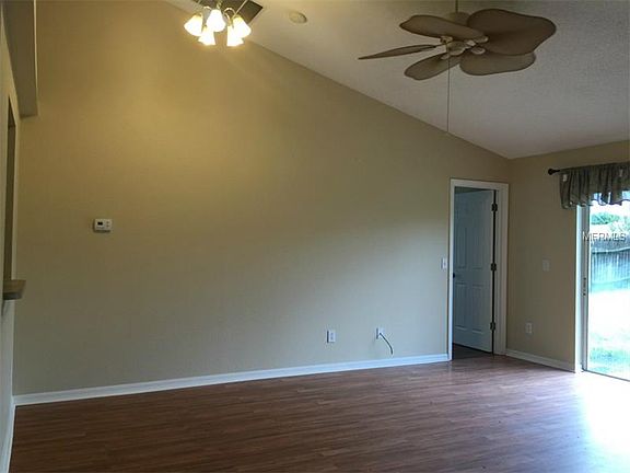 Great home in Southern Pines community features 3 Bedrooms, 2 full baths and 2 car attached garage. As you walk in hallway takes you to the kitchen on the left and hallway to two guest bedrooms and full guest bathroom on the right side. Master suite is located on the rear left side of the house and is separated from other bedrooms by Family/Great room. Kitchen features plenty of counter and cabinetry space to meet your cooking needs. There is a closet pantry and a nice breakfast nook overlooking the front yard. Kitchen is open to Great/Family room and there is a buffet counter in the Dining area. Vaulted ceilings in Family room add to the spacious feel of the area; sliding doors lead to the open patio and fully fenced back yard. Master suite has two closets, extended vanity and tub/shower combo. The community offers swimming pool, playground and recreation area. Only minutes to Disney Parks this home is a perfect choice as a primary residence, vacation getaway or investment so don't wait, call to see it today!