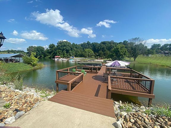 This 4 Bedroom 5 Bath brick home is a definite must see! It offers all the amenities of much higher priced homes and the covered boat slip with lift is included with this sale! 3592 sq. ft. total living. Master on the main, fabulous kitchen w/granite counter-tops, stainless kitchen appliances, new washer & dryer (ALL appliances stay) hardwood floors on the main, 2 gas fireplaces, spacious open floor plan, 2 car attached garage (440 sqft), full finished basement (986 sq ft) w/drive under garage (598 sqft), All 3 refrigerators will convey with sale, low HOA fees, lawn irrigation systems in place, gorgeous landscaping, beautiful lake views, and common dock on the water! This home also has outdoor entertaining/cooking area out back that is a must see! With a ceiling drop TV that will convey with the sale! The basement has been fully renovated to include a bar area with quartz counter-tops, refrigerator-freezer, commercial-grade ice maker, gas fireplace, entertaining area with a full bath.