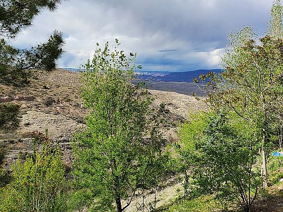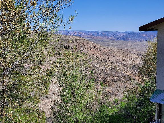1914 "UVX" United Verde Extension miners home on the lower hogback with an unheard-of quarter acre in Jerome sitting on Lots 401-07-127A & 401-07-128A with absolutely incredible knock-your-socks-off views from 5100 feet! Unreal views of the Jerome State Historic Park featuring the Douglas Mansion and endless mountain ranges including the San Francisco Peaks! The solidest garage you ever saw, plus 2 private parking spaces! A giant-sized claw foot bathtub stamped ''1914!'' Jerome's biggest and oldest great-Grandma black walnut. Private railroad tie viewing deck overlooking amazing views while listening to the town water run off! Fruit, nut and shade trees: black walnuts, cherry, apricots, chokecherry, plum, plus a few random evergreens. Beautiful night town views of Cleopatra Hill from the master bedroom window!