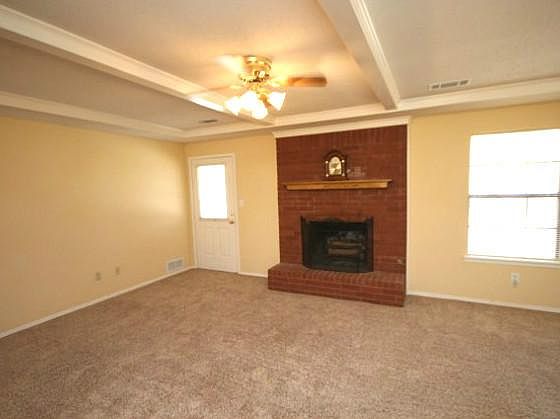 Doll house! Split bedroom plan. Living with fireplace and open to spacious kitchen with appliances. Lots of kitchen cabinets for the cook in the family. Master suite with walk-in shower. Move in ready with appealing colors. Storage .building.