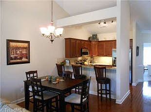 Beautiful Move-in Ready townhome in Meadowlands, spectacular view of golf course & ponds, wonderful level lot. Features open floor plan, granite countertops, ceramic tile backsplash,SS appliances,gas log fpl, dual vanity in master,wood closet organizers in master & 2nd BR, Kohler fixtures throughout,wood floors in all living areas,ceramic tile floors in both baths & laundry,Pella storm door. Covered patio with ceiling fan and extended patio with great view! Optional swim & tennis. Neighborhood Description A wonderful golf course community with beautiful landscaping, friendly people, lots of sidewalks, playgrounds, and a neighborhood swim and tennis club (membership optional).