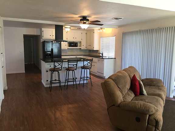 Charming 3 bed, 2 bath NorthWest home w/ DUAL cooling! Welcoming great room w/ fireplace & vaulted ceiling beyond the double door front entry. Appreciate LVP flooring & baseboards throughout. The kitchen overlooks both the living room & dining room and provides granite counters, new induction stove, plenty of counter & storage space, island and recessed lighting. Back patio access from the kitchen & dining. Both bathrooms have been updated w/ new vanities, lighting & plumbing fixtures. Inviting primary suites provides a great walk-in closet & tiled shower. Generous backyard w/ covered & uncovered patio spaces to enjoy. The home also provides PPA solar system for buyer to assume , newer 14 SEER 4 ton Dualpac ('15), evaporative cooler & newer water heater ('13).