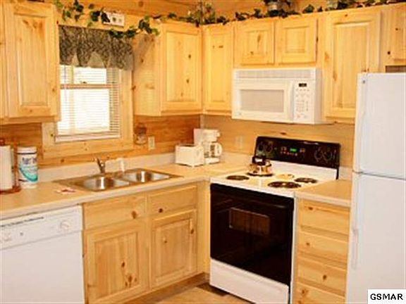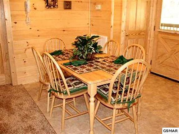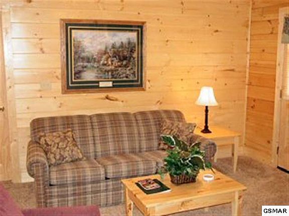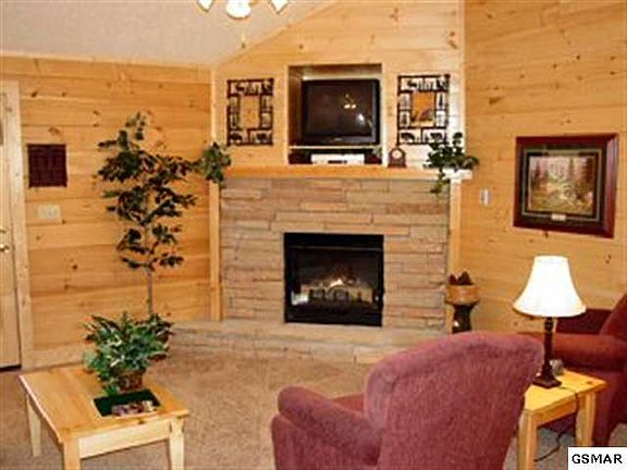 This cozy, log home offers comfortable furnishings and a huge stacked stone fireplace in the living room, featuring a built-in television overhead. There is a pleasantly decorated, fully equipped kitchen and dining area with seating for six. The master bedroom offers a grand king-sized bed and private bedside Jacuzzi. In the second bedroom you will also find a most welcoming king-sized bed, with plenty of space for relaxation.This cabin offers split bedrooms. One on each end of the cabin with the living area between them. This is a very popular floor plan for guests and definitely helps with renting.*Swimming Pool/Clubhouse is owned by Eagles Ridge Resort/Eagle Property Management and not controlled by HOA.