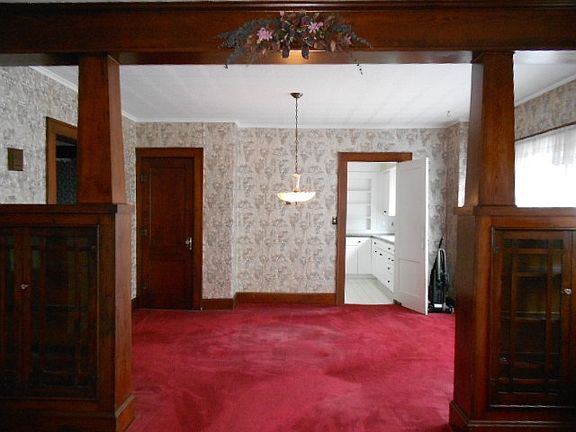 If a very popular small town appeals to you for your family, you will want to see this home in Clay City. This home features a living room with a fireplace with gas log and natural woodwork. There is a beautiful breakfront separating the living room and formal dining room with natural woodwork. There are 3 bedrooms and bath with French doors from the master bedroom leading to an office or den. The kitchen has new white cabinets, counter-tops and faucets. The kitchen could be eat-in if you'd like. There is also a laundry room off the kitchen. Outside you have a vinyl sided home, a covered patio area, a side drive to a detached garage and an enclosed front porch. This home has had great care over the years, you will want to check out this home in Clay City.