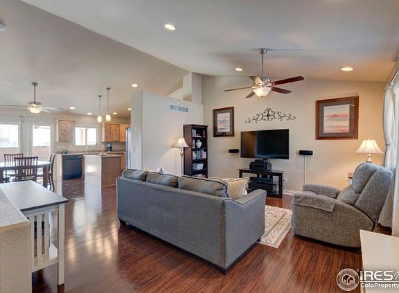 Check out this newer, impeccably maintained & improved ranch style home in Central Loveland. Situated on quiet culdesac with mountain views, home is perfectly sized & very functional. Includes 4 bedrooms, 3 baths, a nicely finished basement, expansive bamboo floors, & new carpet in the bedrooms. Kitchen has knotty alder cabinets, a gas range, and an island. Outdoors enjoy the large, covered patio & the big, fenced yard backing to open space. The garage is oversized & drywalled. Don't miss out!